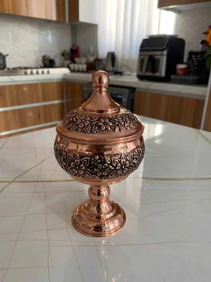 پیاله مسی گلبرگ پایه بلند مسی