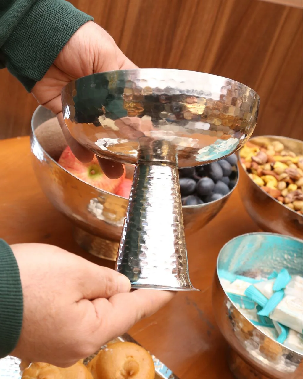 شکلات خوری مسی دست ساز، ساخت زنجان تمام چکشی با پوشش قلع می باشد.