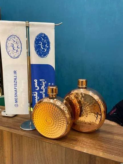 بافت زیبای چکشی روی سطح مس خالص که با مهارت صنعتگران زنجان ایجاد شده جذابیت بصری را به حداکثر می رساند. این بافت نور را به شکلی متفاوت از یک سطح صاف بازتاب می دهد و عمق بیشتری به رنگ سرخ مس می بخشد. مس به دلیل ویژگی های طبیعی خود به حفظ دمای سرد مایعات کمک می کند و یک انتخاب بهینه برای سرو شربت و آب در مهمانی هاست. قمقمه مسی چکشی گرد بزرگ انتخابی برای کسانی است که به دنبال یک ظرف حجیم کاربردی و در عین حال هنری هستند که هنر صنایع دستی را در یک فرم کروی و سنتی به نمایش بگذارد.