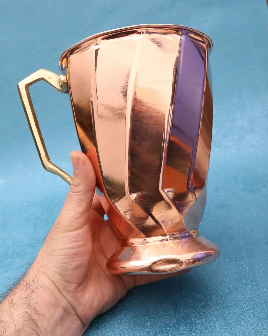 این پارچ مسی با فرم بدنه دارای خطوط پیچی یا موج دار نه تنها یک جلوه بصری دینامیک ایجاد میکند. بلکه گرفتن و جابجایی آن را نیز آسان می سازد، با ارتفاع ۱۹ سانتی متر و قطر ۱۴ سانتی متر این پارچ حجم مناسبی از مایعات را در خود جای می دهد. وزن ۴۵۵ گرمی آن ثبات لازم را روی میز ایجاد می کند.